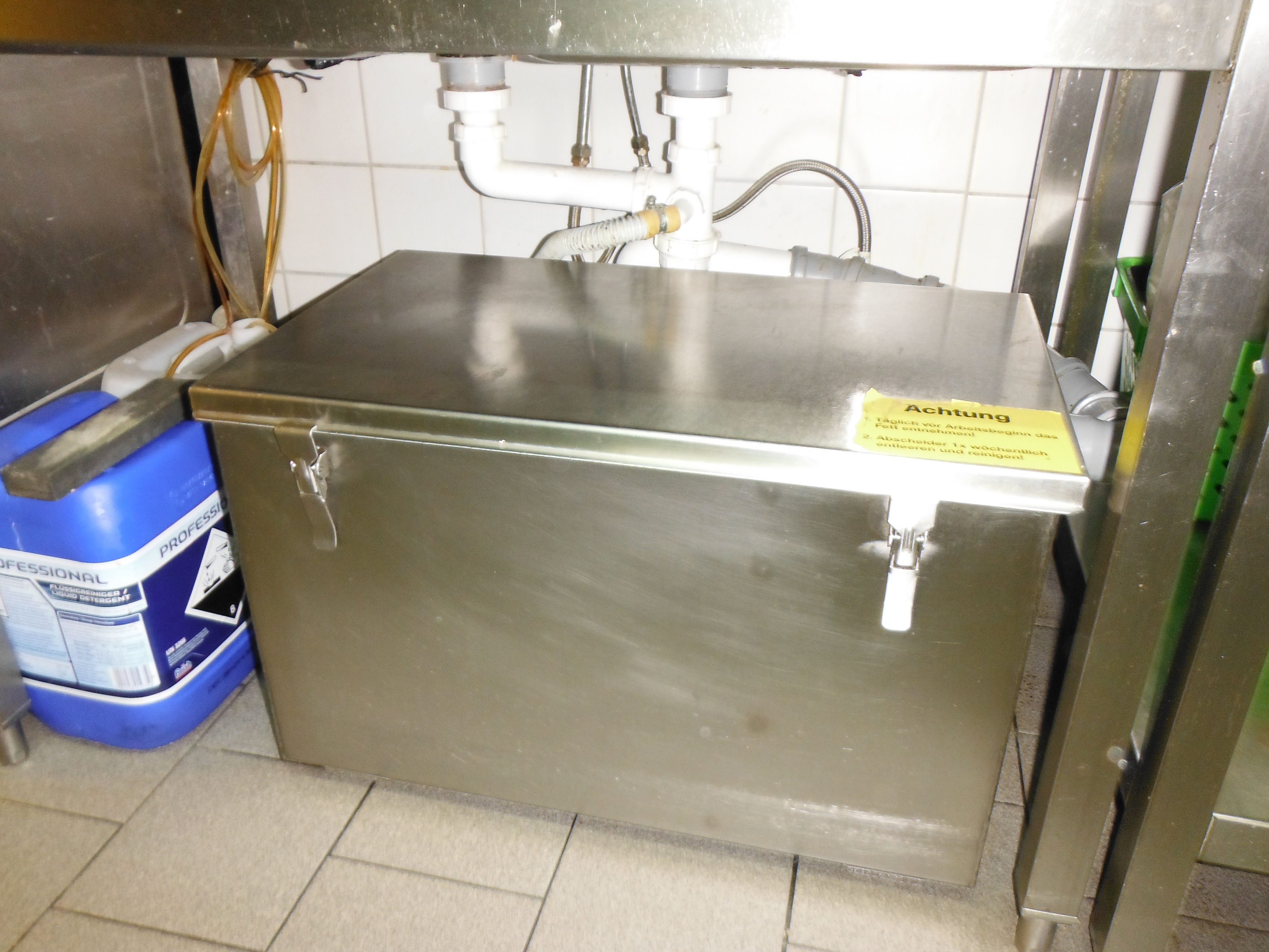 Bei oberirdisch aufgestellten Fettabscheideranlagen genügt gemäß DIN 4040-100:2016-12 eine einfache Inaugenscheinnahme des Behälters. Eine Entleerung und Dichtheitsprüfung ist hier NICHT notwendig!